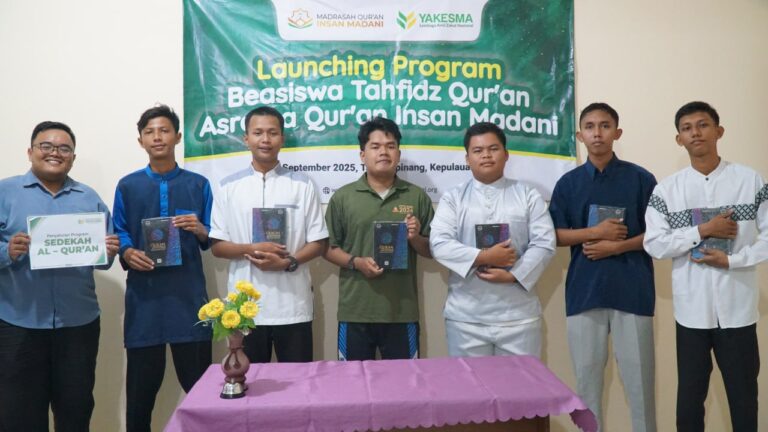Tanjungpinang, 6 September 2025 – Madrasah Qur’an Insan Madani (AQIM) bekerja sama dengan Lembaga Amil Zakat Nasional (LAZNAS) Yakesma resmi meluncurkan Program Beasiswa Tahfidz Qur’an Asrama Qur’an Insan Madani (AQIM) pada 5–6 September 2025. Program ini diharapkan menjadi angin segar bagi mahasiswa yang berkomitmen menjadikan Al-Qur’an sebagai cahaya hidup di tengah perjalanan akademik mereka.