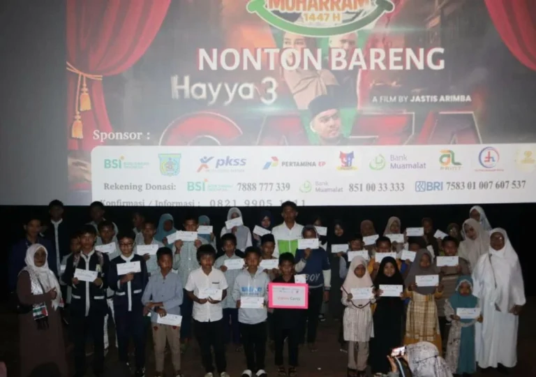 Kota Sorong – Momentum bahagiakan anak yatim diwujutkan oleh Lembaga Amil Zakat Nasional Yayasan Kesejahteraan Madani (Yakesama) berkolaborasi dengan Relawan Untuk Negeri (RUN) Papua Barat Daya melalui nonton bareng (Nobar) film Hayya 3 Gaza di Studio Bioskop XXI Ramayana Sorong. Kamis (17/07).