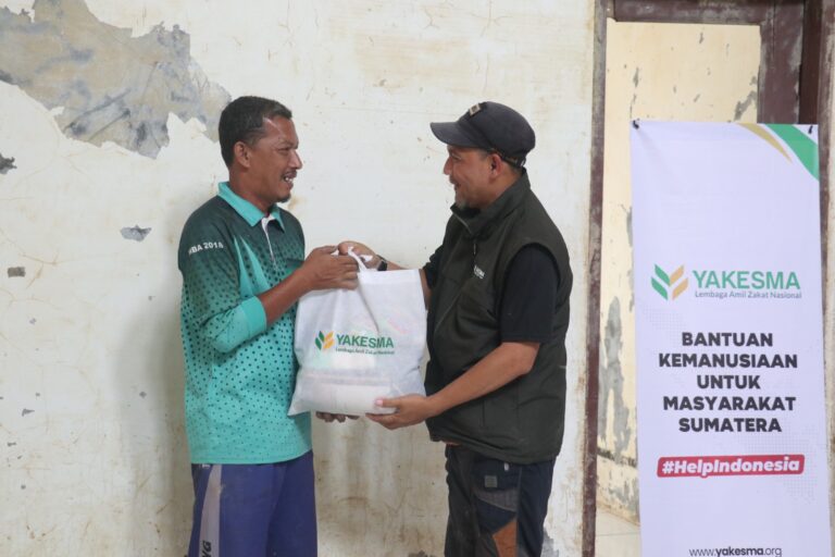 Aceh Tamiang – Lembaga Amil Zakat Nasional YAKESMA menyalurkan bantuan berupa paket sembako dan vitamin kepada 50 guru dan tenaga pendidik SMKN 1 Kuala Simpang, Kabupaten Aceh Tamiang, pada 10 Januari 2026. Bantuan tersebut merupakan bagian dari program Peduli Bencana Sumatera sebagai respons atas bencana banjir yang melanda wilayah tersebut.
